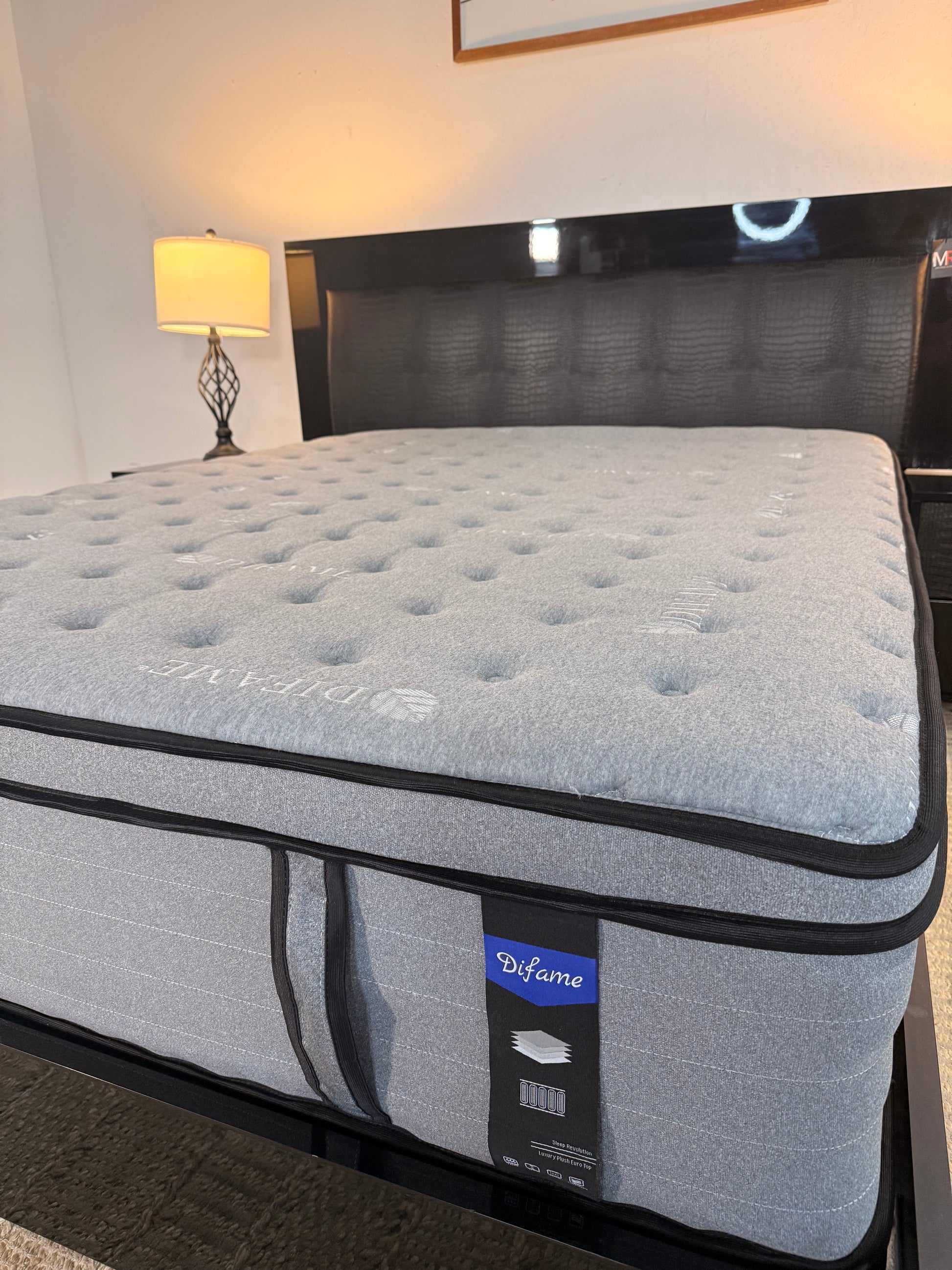 Faux alligator leather backing on headboard and the front of nightstands